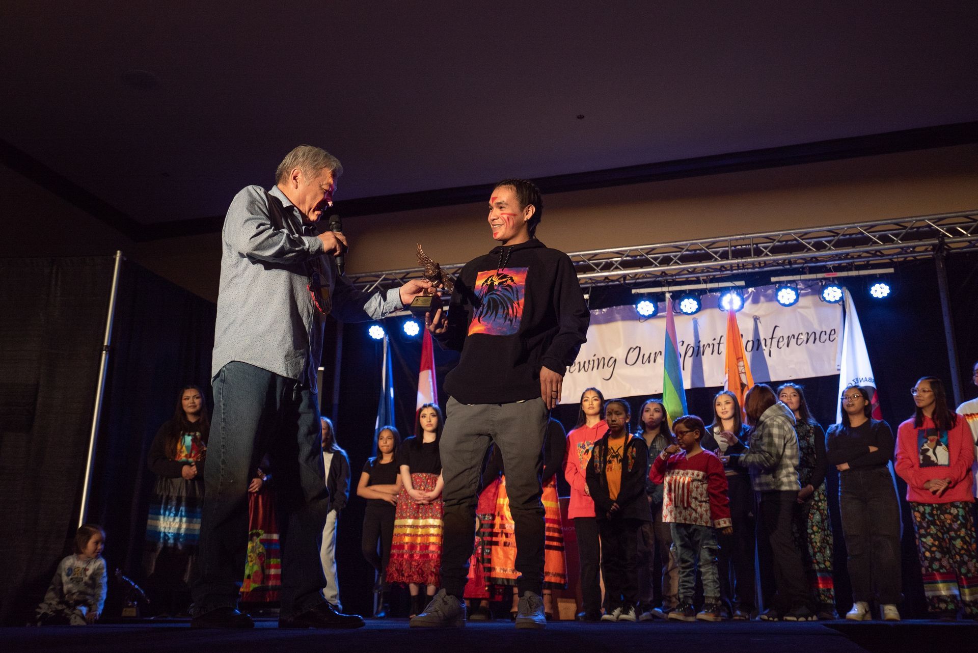 Another first at the Edmonton youth conference this year were the Dene drummers from Dene Tha’ First Nation that came out and drummed many great songs. The youth fashion models were awarded for their participation and courage to be under the spotlight in front of a large audience. Lastly, the four-day sacred fire in the city of Edmonton was a first for the Renewing Our Spirit Conference.